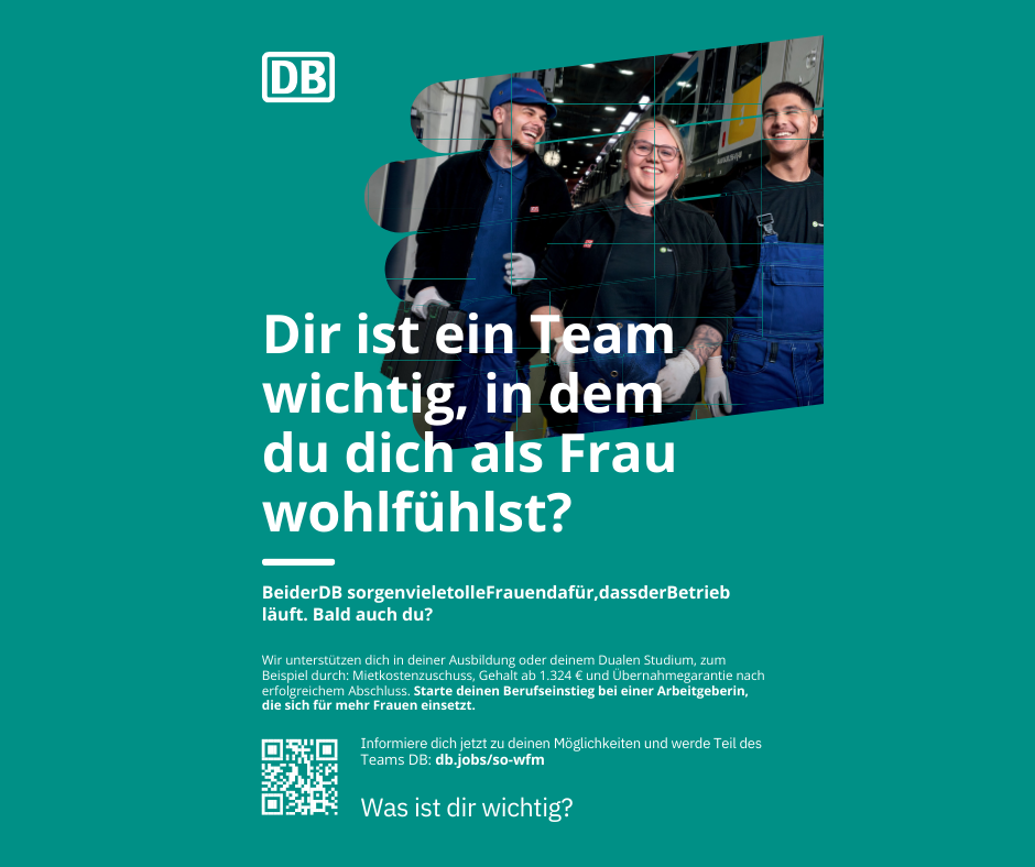 Die Deutsche Bahn hat den März erneut zum Weltfrauenmonat ausgerufen. Mit der aktuellen Kampagne „DB Weltfrauenmonat – Mit Visionen und Leidenschaft dabei“ verfolgt das Unternehmen das Ziel, weibliche Auszubildende, dual Studierende sowie Fachkräfte insbesondere für technische Berufe zu gewinnen.